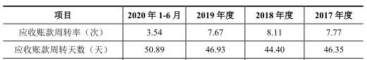 2017年至2020年6月30日,华利股份应收账款账面余额分别为13.48亿元、17.40亿元、22.55亿元、17.05亿元,占流动资产的比例分别为29.01%、36.51%、35.60%和26.76%。应收账款周转率分别为7.77次、8.11次、7.67次和3.54次,可比同行业上市公司平均应收账款周转率分别为8.64次、8.08次、8.58次、3.80次。
