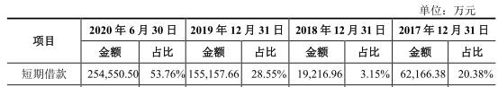 值得注意的是,公司短期借款去年起大幅飙升,2019年末,短期借款同比增长达707.40%,今年上半年较去年底增长64.06%。