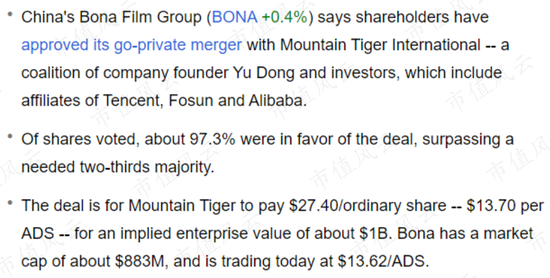 博纳影业于2016年4月完成私有化交易并退市。