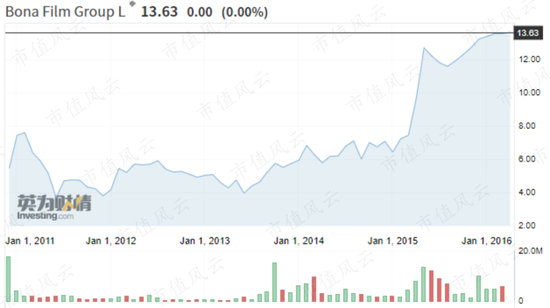 博纳影业于2010年在美国纳斯达克上市,代码BONA.O。