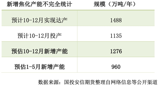 除此之外,还需要考虑到今年高炉投产进度是显著不及预期的。按照原投产计划,今年11月预计投产的高炉产能在1300万吨左右。不过即使考虑到有部分投产延后的情况,年底高炉置换产能的新增投放也是存在的,还会带来新的焦炭需求。