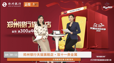 由郑州报业集团主办,郑州银行独家总冠名的“搏浪而出——‘郑州银行杯’2020郑州首届超级主播大赛”自启动以来,吸引了社会各界的广泛关注。继“郑州银行信用卡,乐享十一‘奥力给’”直播活动之后,11月5日,“郑州银行天猫旗舰店•双十一贵金属high购抽好礼”直播活动也取得圆满成功。郑州首届超级主播大赛人气选手丁悦,与正观新闻郑直播主播一起,在郑州报业集团全息直播间为大家带来了一场热闹非凡的贵金属产品直播。