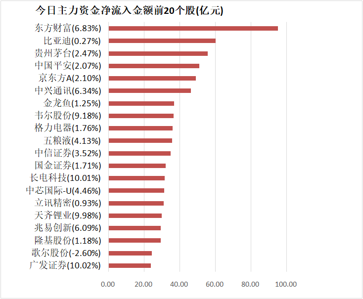 今日沪深两市主力资金开盘净流入79.56亿元,尾盘净流出3.19亿元,两市全天资金净流入192.06亿元。