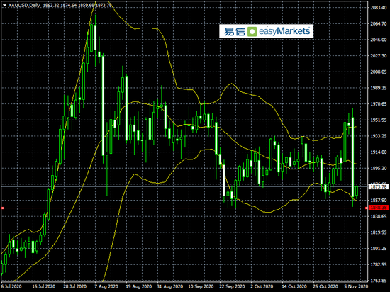 黄金昨日大跌纯粹就是因为疫苗研制成功消息刺激了投资人的风险偏好情绪,令黄金避险价值削弱。黄金既然短线已经失去了炒作避险概念的冲动,那么意味着黄金需要一个过程的再平衡,没有基本面消息的支持黄金不大可能短线会重拾涨势。