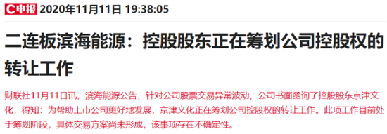 公开资料显示,滨海能源是天津国企,典型的壳资源概念股,最新公告控股股东筹划控股权转让,其实上市以来多次易主。