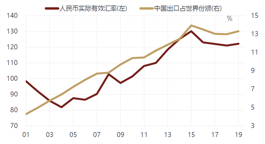 而中国今年出口份额的上升可能并不仅仅是疫情因素带来的暂时性现象,更有可能是产业升级的结果,一旦确认出口竞争力上升到一个新的高度,意味着人民币在过去五年的贬值周期基本上结束了。