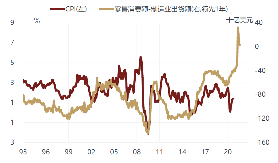 由于供需缺口已经从供给过剩转向供给短缺,这个缺口的变化趋势大约领先CPI一年左右的时间,所以我们认为,美国明年出现滞胀的风险是很高的,通胀回升的速度会比经济恢复的速度更快。