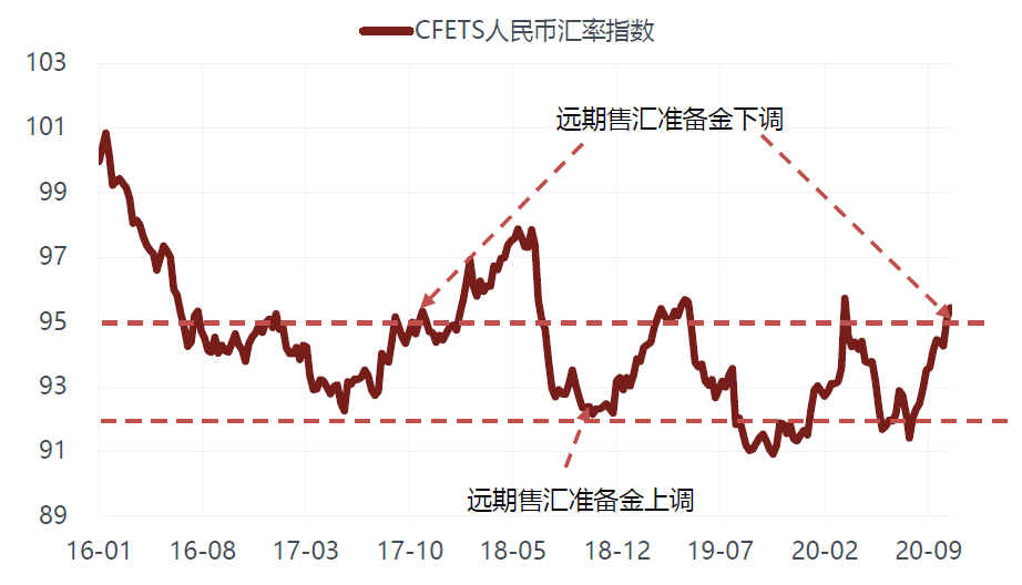 债券:现在需要关注的是央行对流动性的态度是有一些变化的,我们看到人民币兑一篮子货币的指数升过95之后,央行下调了远期售汇的风险准备金率,这说明央行不希望汇率升得太快。