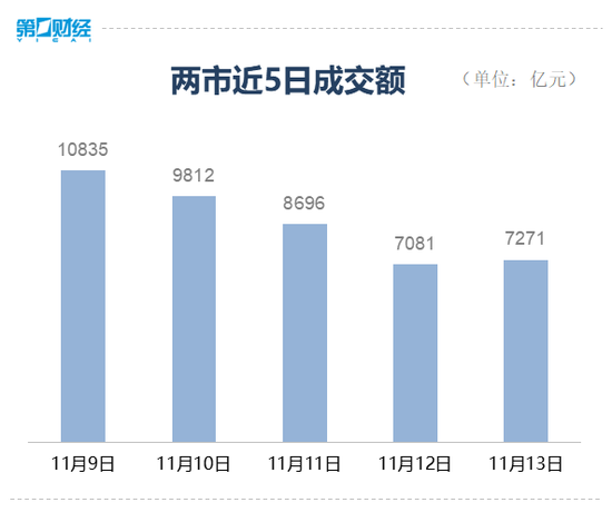 11月13日,A股三大股指弱势震荡,截至收盘,沪指跌0.86%,报收3310点;深成指跌0.27%,报收13754点;创业板指涨0.23%,报收2706点。板块大面积飘绿,保险、白酒、银行等大幅下挫,伊力特等多只白酒股跌停;航天军工、汽车板块涨幅居前。