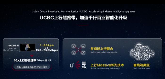 汪涛介绍道,扩展应对的是日益增长的新应用诉求,5G定义的三大场景已经无法支撑更多样性的物联场景需求。比如工业物联的应用,既需要海量连接,又需要上行大带宽,华为提出在eMBB和mMTC之间增加一个场景,命名为UCBC,聚焦上行能力的构建;