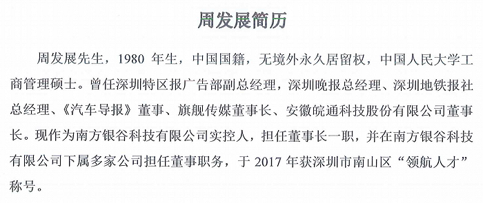 材料显示,李臻系副董事长,来自于上海执古资管;廖凯系总经理,甄峰为副总经理,两人曾源出南方银谷,甄峰曾为南方银谷的董事,廖凯不但也任过董事,同时还持有南方银谷的股份,按理说两人应该是站在南方银谷的周发展这边,可实际上,在此前罢免周发展时,两人投出了同意票。鲜明的立场不言而喻,在3月份南方银谷也将廖凯和甄峰从南方银谷的董事名单中踢掉。