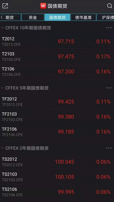11月16日上午,MLF续作超规模后,国债期货全线飘红。截至午盘,国债期货全线上涨,10年期主力合约、5年期主力合约涨0.11%,2年期主力合约涨0.06%。银行间债券市场收益率波动较小,10年期国债活跃券200006收益率下行0.5bp报3.26%。