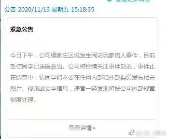 另据消息,事件发生后,网龙公司内部发布全员“紧急公告”称,公司缥缈庄区域发生“闹访玩家伤人事件”,公司禁止员工在任何渠道发布相关信息。