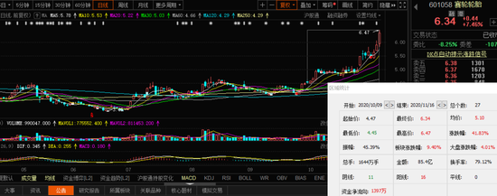赛轮轮胎已三连阳,10月以来股价涨幅42%,最新报收6.34元/股,创下五年来新高。据悉,赛轮轮胎是国内头部轮胎企业之一。随着下游汽车行业景气度回升,其第三季度单季的轮胎产销量、净利润均创下历史新高。