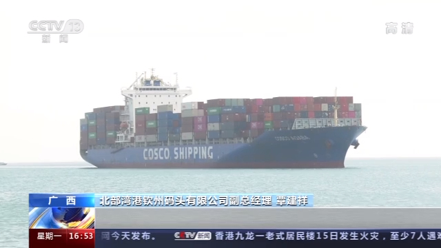 北部湾港钦州码头有限公司副总经理 覃建祥:1月到10月其实同比艘次是下降的,但是我们的箱量是提升的,那说明我们船舶的大型化,船舶的这些结构也变化了,我们接靠的这些大船也增多了。