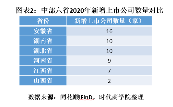 截至10月31日,2020年湖南新增上市公司10家,在中部六省中与湖北并列第二,仅次于安徽(16家)。
