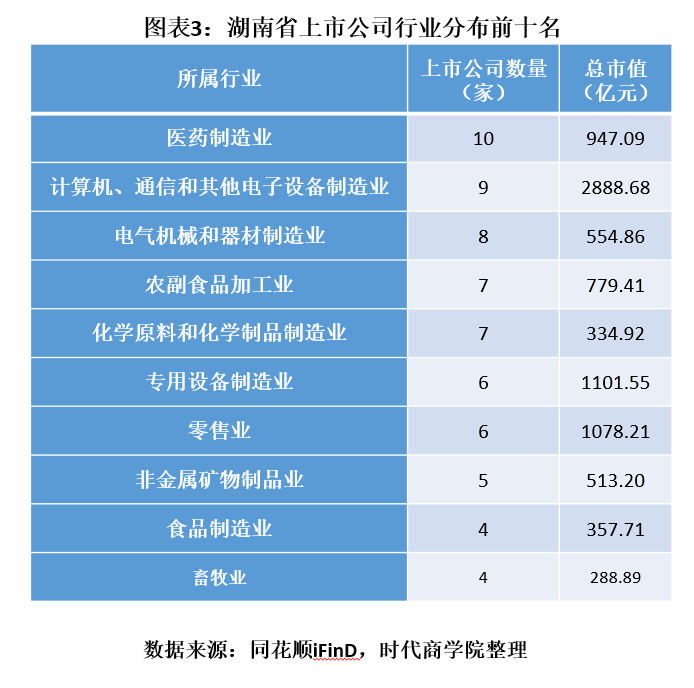 “计算机、通信和其他电子设备制造业”是湖南省内总市值最高的行业,诞生了蓝思科技(300433.SZ)、安克创新(300866.SZ)等大市值先进制造业企业。