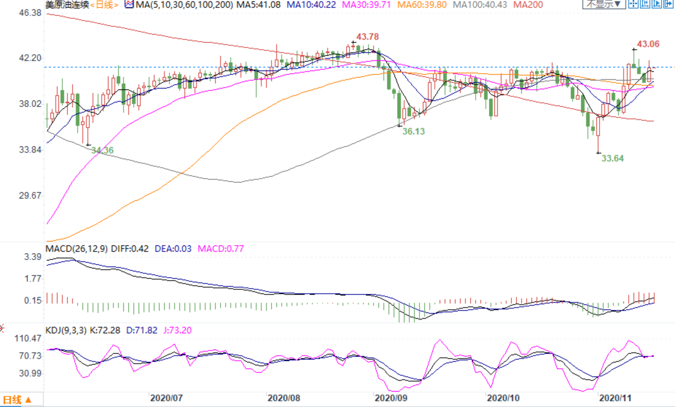 Moderna表示,其实验新冠疫苗有效率为94.5%。这提振了风险资产,油市需求也有望继续复苏。OPEC+倾向于将1月增产计划至少推迟三个月,以支撑油价,因第二波新冠疫情仍在继续。