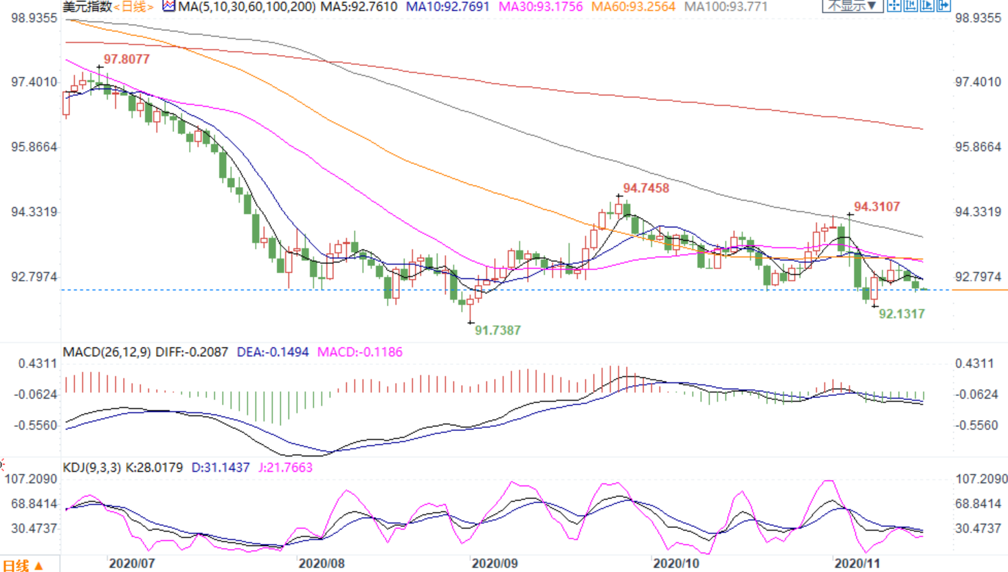 美元指数持稳在92.5附近。Moderna疫苗的一个关键优势是,它不需要像辉瑞疫苗那样超低温储存,这使它更容易分销。