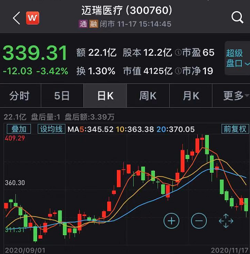 影响最大的要数迈瑞医疗,该股在创业板指中所占权重达到5.34%,位居第三。从11月5日回调至今,该股累计跌超16%。