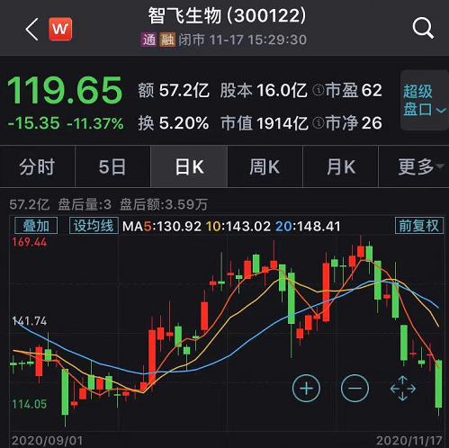 智飞生物所占权重达到2.99%,该股近期也是持续回调。