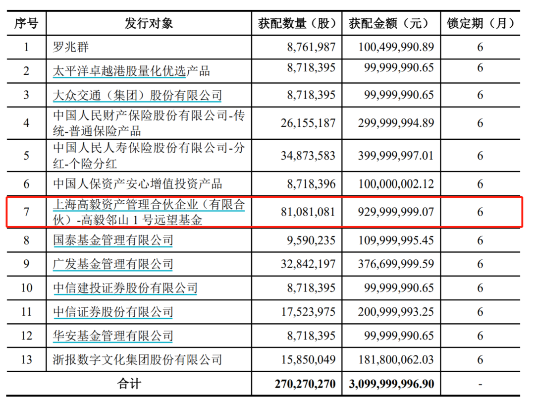 4月13日晚间,世纪华通发布的非公开发行公告显示,冯柳管理的高毅邻山1号远望基金获配8108万股,持股高达3亿股,持股市值达到42.12亿元,持股比例达到4.82%,逼近5%的举牌线,已经成为世纪华通的第五大股东。