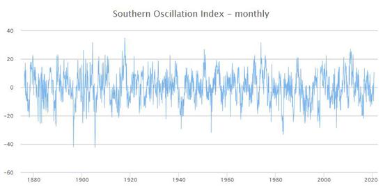 从数据来看,显示拉尼娜现象无疑已经存在。南美海岸和赤道国际日期变更线间的水温比平均温度低1-1.5摄氏度。被称为南方涛动指数的SOI大气压力指数也指向拉尼娜气候已经形成。该指数高于7,显示拉尼娜形成。截至9月30日,澳大利亚气象局公布的30天南方涛动指数达到10.5。从强度来看,虽然模型预测本次拉尼娜能够接近2010-2012年度的水平,不过从数据来看,目前显示强度仍为中等。通过比较2020年9月份的月度SOI与2010年的SOI和2008年的SOI可以发现,今年9月份的SOI值较低。2020年9月的SOI值为10.5,相比之下,2008年9月的SOI值为13.5,2010年9月的SOI值为24.9。因此SOI值可能预测今年气象会弱于2008年以及2010年。值得一提的是,2010年的拉尼娜天气为近50年来最强的一次。