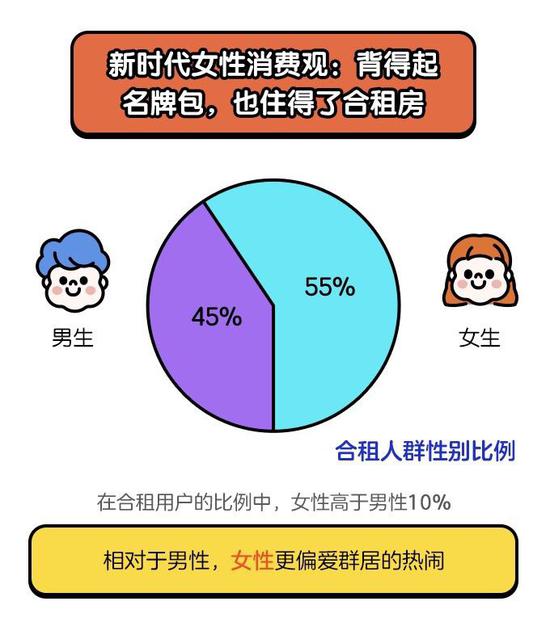 数据还显示,女性合租者的比例高于男性:像电视剧《欢乐颂》里那样,女主们背得起名牌包包,也住得了合租房,她们只是更偏爱聚居的热闹。