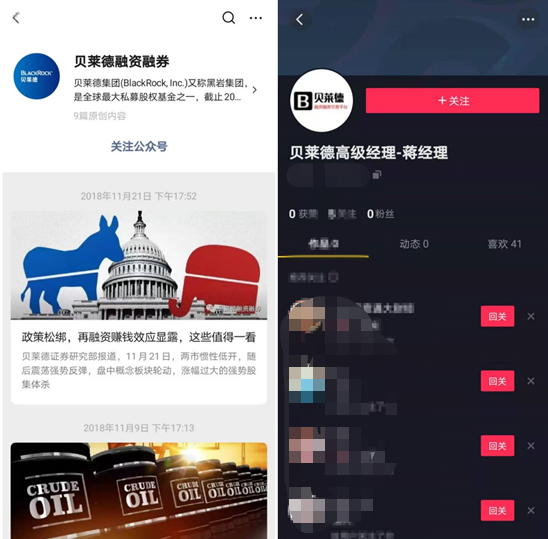 基金君看到了“贝莱德融资融券”这个微信公众号,其在直播平台上还有贝莱德高级经理的号。