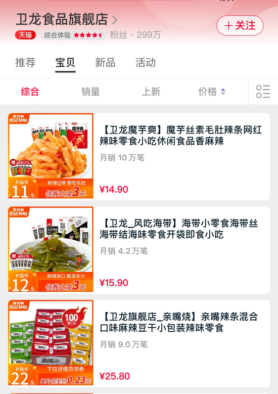 与三只松鼠、良品铺子等同类企业相比,卫龙产品结构相对单一,且多处在中低端价位。