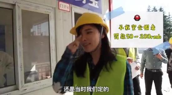 有工作人员提醒她要戴上头盔,不然会罚钱,这时她有意无意地向镜头透露:“这个罚价还是当时我们定的。”