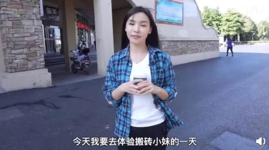 那么,这位博主究竟拍了什么?视频一开头,她打扮精致、拿着一杯咖啡出现在闹市区,自称今天要去体验搬砖小妹的一天。