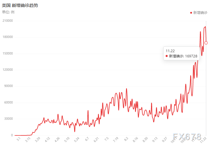 据数据显示,美国疫情22日新增达到16.9万,21日单日新增近20万,刷新历史记录。