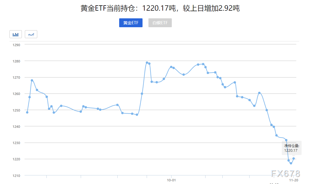 11月20日黄金ETF持仓增加2.92吨,这是ETF持仓七连跌以来首度增加,表明市场对黄金的避险需求有所回升,目前仍然处于7月22日以来的低位。