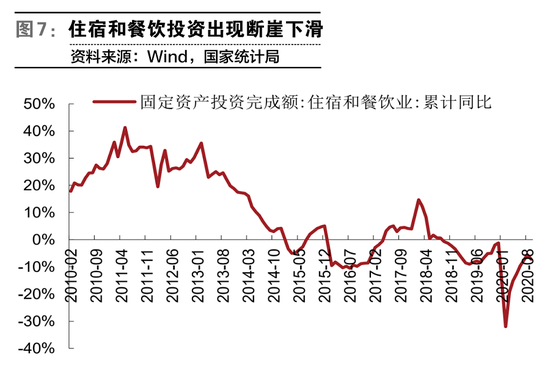 2020年酒店供给端的收窄来自存量和新增投资减少。一方面受新冠疫情影响,2020年酒店行业关店约15万家,占2019年住宿总盘的25%;另一方面,餐饮住宿行业的投资出现断崖式下滑。