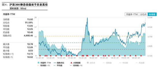 截至11月13日,沪深300的PE(TTM)为15倍,接近2018年初的水平,处于过去十年91%的较高分位水平。上证指数的PE(TTM)约为15.5倍,处于过去十年75%的高分位水平。这是否意味着,当前市场已经很贵了呢?