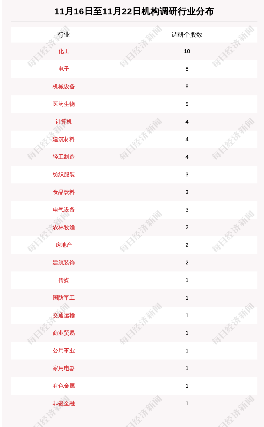 从行业上来看,机构调研主要集中于化工、电子、机械设备。