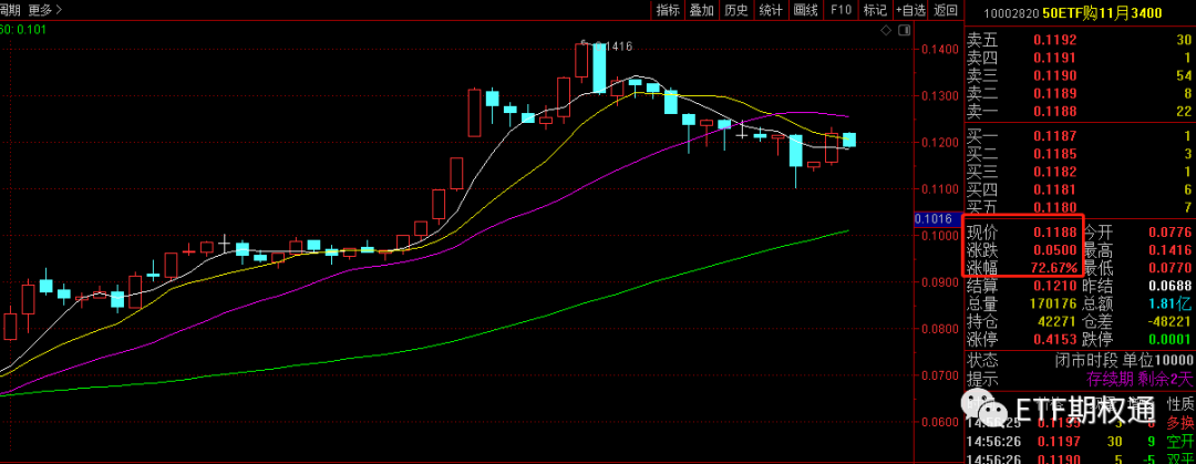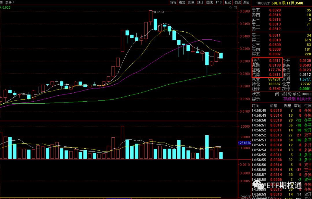 如果投资者在预备同等本金的情况下分别买入以上三个合约的话,虚值一档合约价格的涨幅比例是最大的;但虚值合约适合博弈型投资选手,此类策略属于最为激进的投机策略,要特别注意:标的价格即使发生了有利方向的变动,你买入的深度虚值合约可能不会赚钱,反而赔钱,甚至变成一张废纸!