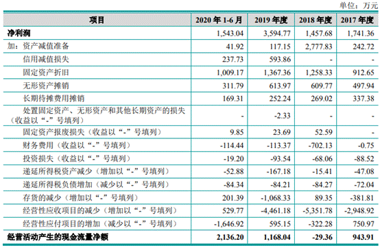 各期,公司经营活动产生的现金流量净额分别为943.91万元、-29.36万元、1168.04万元、2136.20万元,与同期净利润差额分别为-797.45万元、-1487.04万元、-2426.74万元、593.16万元。
