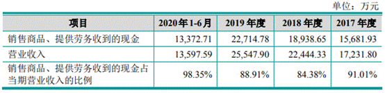 各期,公司销售商品、提供劳务收到的现金分别为1.57亿元、1.89亿元、2.27亿元、1.34亿元,销售商品、提供劳务收到的现金占当期营业收入的比例分别为91.01%、84.38%、88.91%、98.35%。