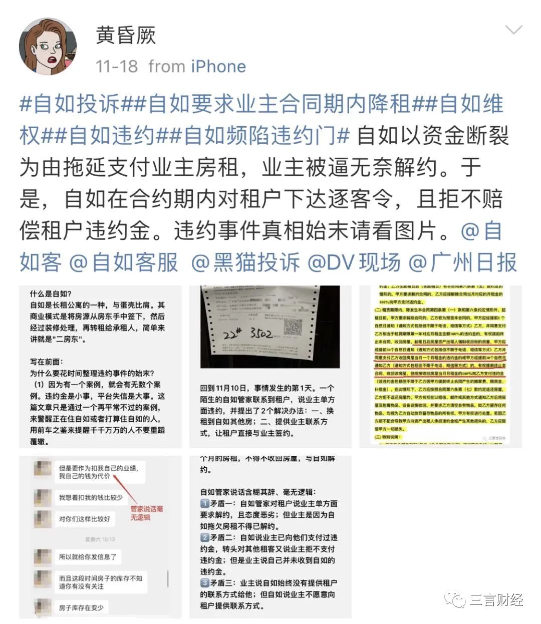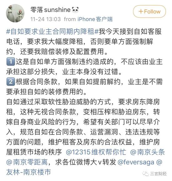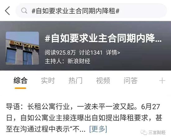 事实上在微博上,#自如要求业主合同期内降租#的话题已经有近千万的阅读量,而相关的爆料最早从今年6月份就已经出现。