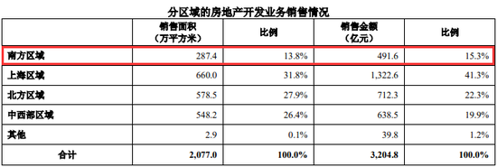 万科南方区域失落是不争的事实,今年半年报显示,万科南方区域的销售额占比为15.3%,排名垫底;在营业收入之上,南方区域占比为27.07%,四大区域之中仅跑赢北方区域。