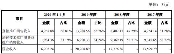 2017年度、2018年度、2019年度和2020年1-6月,森根科技通过技术推广服务商取得的收入占比分别为68.72%、52.71%、34.24%和31.19%。