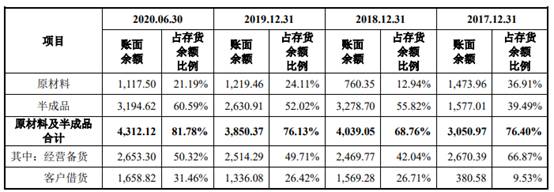 2017年末至2020年6月末,公司原材料、半成品中的客户借货余额分别为380.58万元、1569.28万元、1336.08万元和1658.82万元,客户借货金额呈增长趋势。