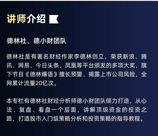 新浪理财大学特邀德林社财经分析师德小财团队为大家倾情打造《牛散必学的A股实盘技巧》!从心法、复盘、看盘一个层面讲解顶级资金的投资之路!