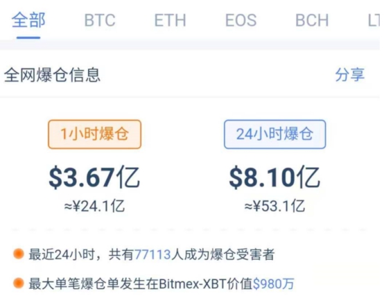 此外,有报道指出,比特币价格暴跌也导致杠杆交易者大面积爆仓。币coin数据显示,近1小时内,靠借入资金买入比特币的交易者爆仓3.67亿美金。