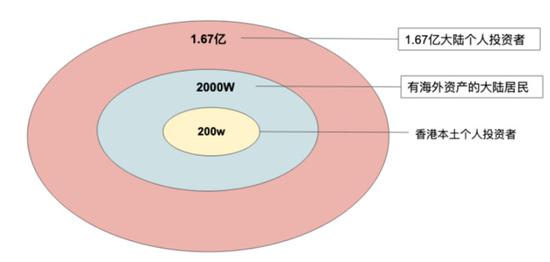 有海外资产的大陆居民假设有30%的人做投资,富途在此期间的客户天花板是600万客户,假设富途的市场占有率为10%,则有资产客户规模可达到60万,加上香港本地200万股民中,假设富途的市场占有率为20%,则有资产客户规模可达40万客户。
