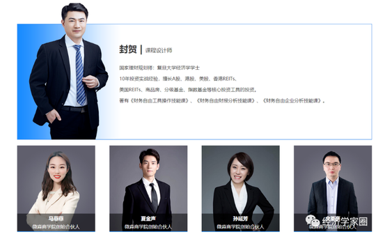 微淼商学院在各路宣传推广对封贺如此介绍:复旦大学经济系毕业的农二代、国家理财规划师,10年投资实战经验。