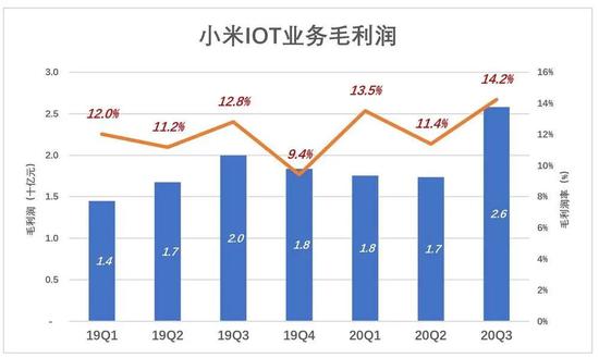 IoT与生活消费产品毛利润率同比略有提高,2020年Q3毛利润、毛利润率分别是为26亿、12.2%。毛利润较2020年Q2净增6亿,利润率提高1.4个百分点。