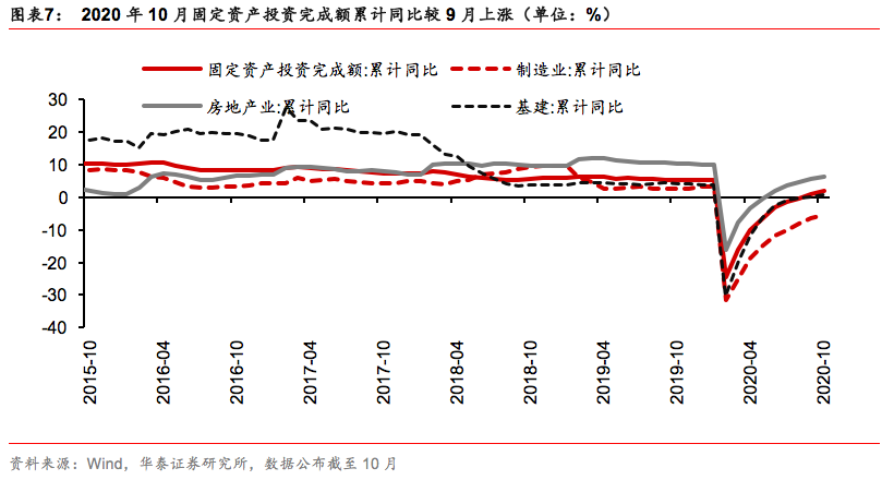 10月工业企业利润累计同比增速0.7%,年内首次转正,利润率升至5.98%,但营收累计同比增速仍为-0.6%。对比次贷危机后的2009~2010年:2009.11工业企业利润累计同比增速转正为7.76%,但彼时利润率仅回升至5.46%,营收累计同比增速为7.1%,且已于2009.8月转正,直至2010年Q2利润率才回升至6.07%。从收入-利润-利润率三者关系来看,我们认为本轮工业企业的盈利对信用扩张(对应收入同比增速的弹性)、特别是政府和居民部门加杠杆的依赖度明显下降,国内逆周期政策的有序退出对盈利趋势的影响可能不大。